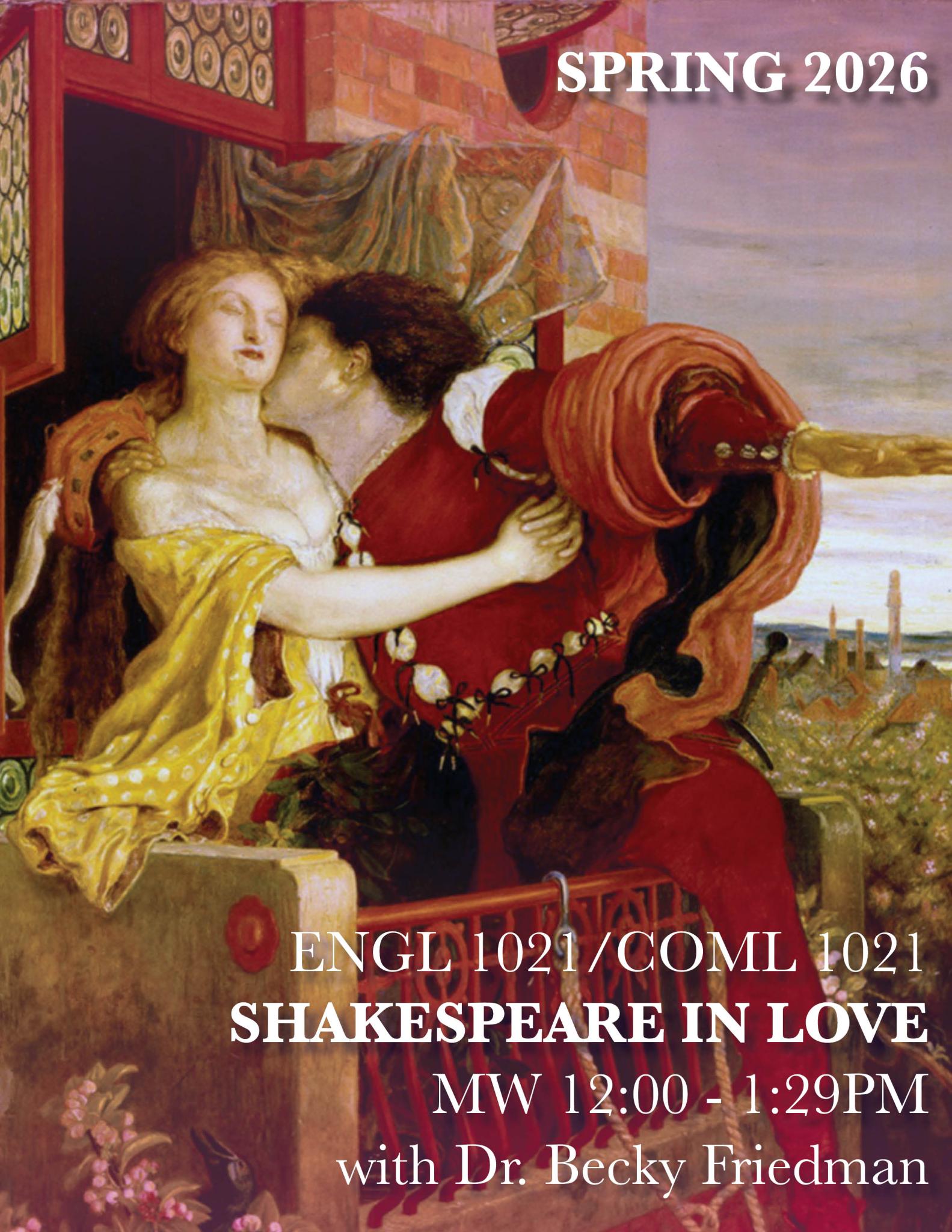 “O Romeo, Romeo, wherefore art thou Romeo?” Why does this line—and Shakespeare’s tale of forbidden love more generally—remain so popular in the cultural imagination? What makes Shakespeare’s work so relevant over four centuries after it was written? How have spectators, readers, and scholars consumed and revised Shakespearean drama over time? This course will consider these questions and more, as we read some of William Shakespeare’s most powerful plays, including Hamlet, King Lear, The Merchant of Venice, A Midsummer Night’s Dream, Othello, and Romeo and Juliet. As an introduction to Shakespearean drama and the popular performance culture of the English Renaissance, the course will explore the literary, social, and political context in which the Bard lived. With close readings, discussion, informal in-class performances, and a look at several film adaptations, we will become familiar with Shakespeare’s language and the structure of his plays as we investigate genre, representation, contemporary dramatic practice, and recent reimaginings.