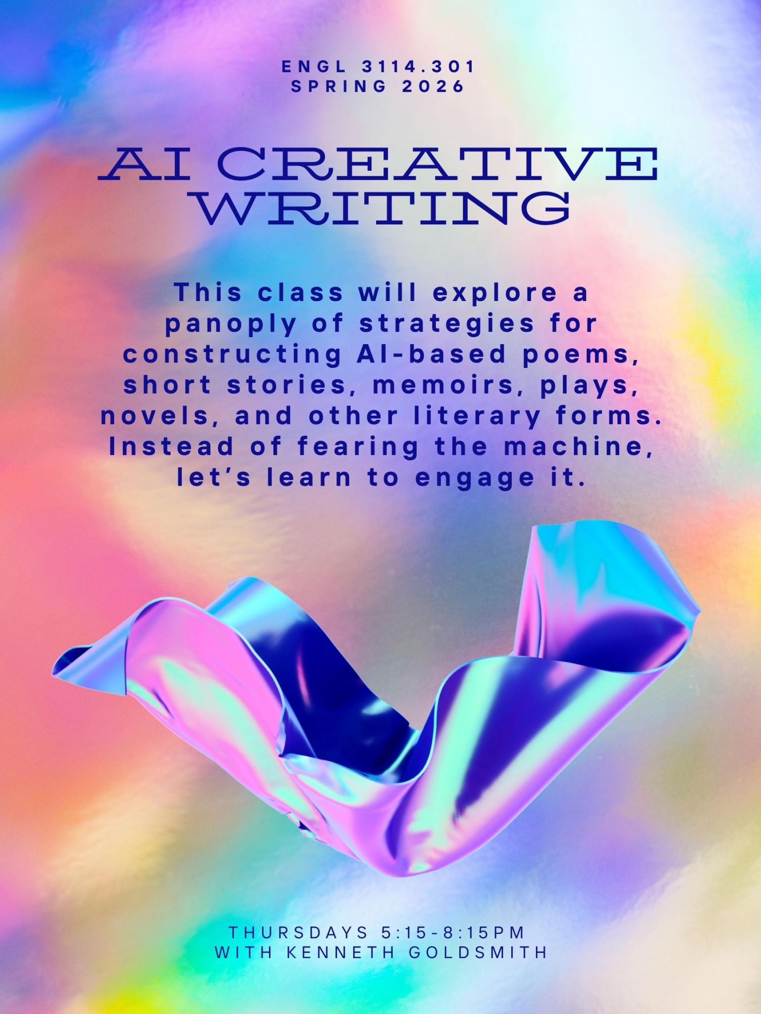 How can writers adapt to the onslaught of artificial intelligence, machines so good at writing that they threaten to make our craft obsolete? Instead of fearing the machine, let’s learn to engage it, as both collaborator and antagonist, as a sort of literary frenemy. This class will explore a panoply of strategies for constructing AI-based poems, short stories, memoirs, plays, novels, and other literary forms. In a field as new and as rapidly evolving as AI, the questions we ask will be as important as the answers we receive: Is literature as simple as pushing a button? Might we use our human-based resources and creativity to make a literary end-run around the machine? What is the future of literature and what is our place in it? Every time literature has been challenged by a technology — be it Gutenberg, the telegraph, the typewriter, or word processing — it’s had to adapt in order to survive. And survive it did. One thing is sure: AI isn’t going away. This class will seek to define and employ a new set of literary tools that will help us move — and thrive — towards the inevitable future.